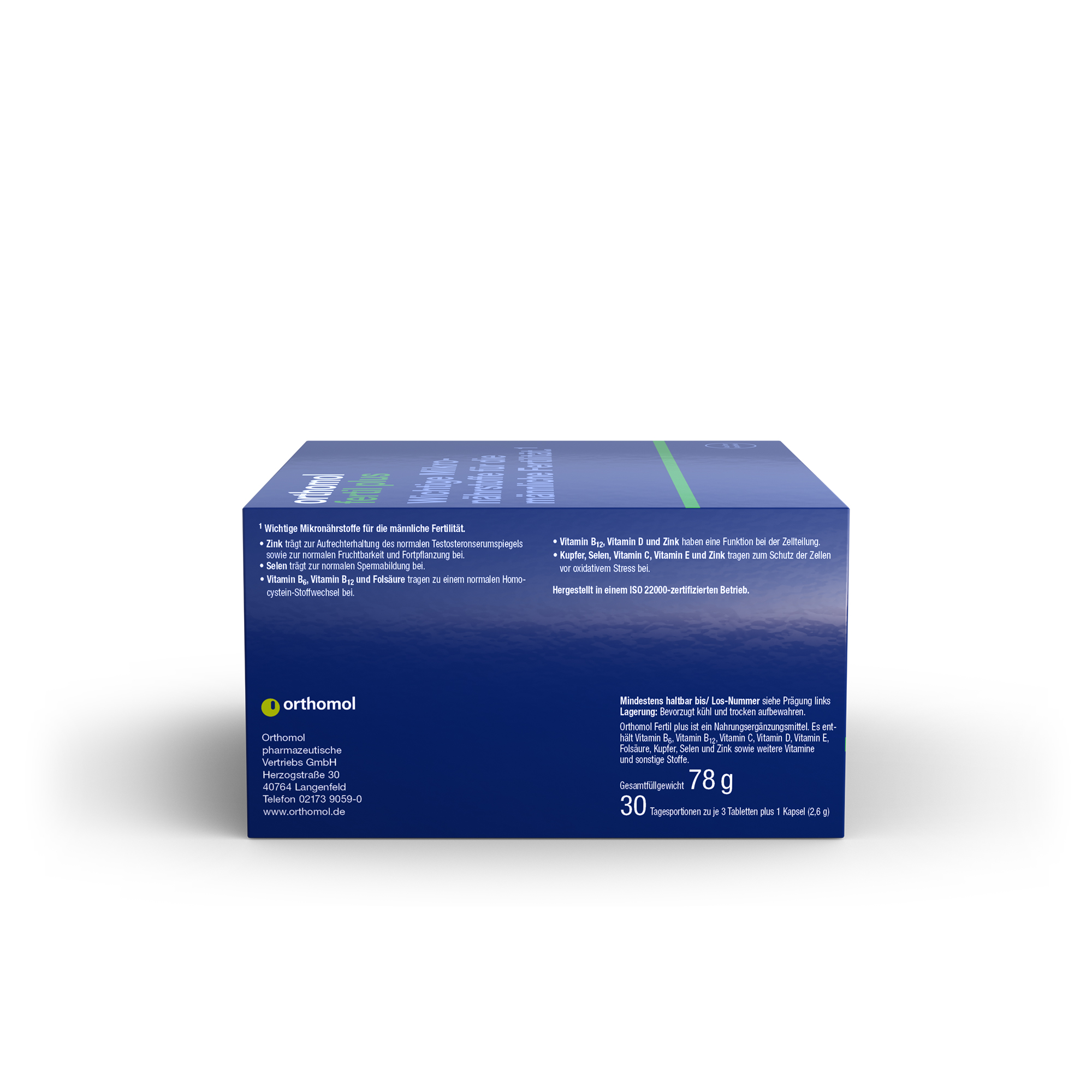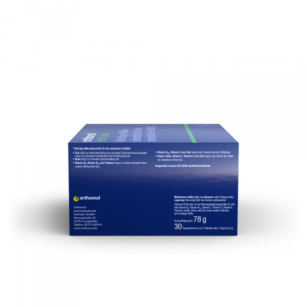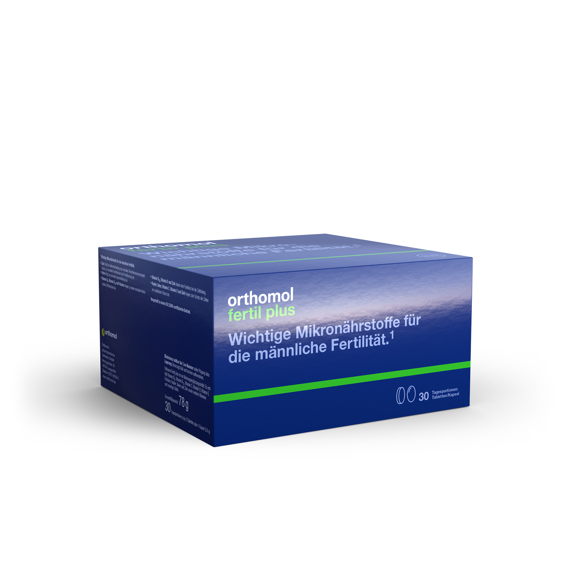 Orthomol Fertil plus ist ein diätetisches Lebensmittel für besondere medizinische Zwecke (bilanzierte Diät). Orthomol Fertil plus zur diätetischen Behandlung von Fertilitätsstörungen beim Mann.
