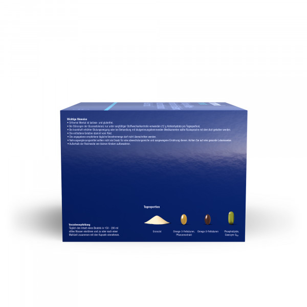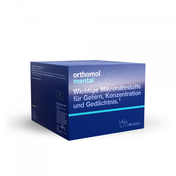 Orthomol Mental ist ein Nahrungsergänzungsmittel. Wichtige Mikronährstoffe für Gehirn, Konzentration und Gedächtnis. Mit Pantothensäure für die mentale Leistungsfähigkeit.