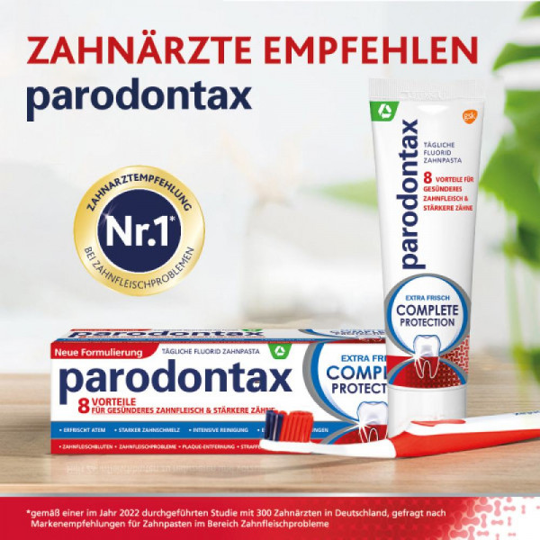 • PARODONTAX AUSWÄHLEN: Die parodontax Complete Protection Extra Frisch Zahnpasta hilft, Zahnfleischbluten zu reduzieren und vorzubeugen