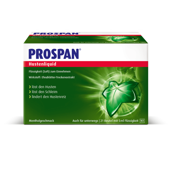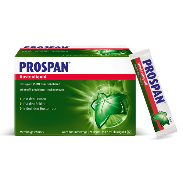 • PROSPAN®. STARK GEGEN HUSTEN: Husten kommt immer zu einem unpassenden Zeitpunkt. Prospan® Hustenliquid im Stickbeutel ist die praktische, schnelle und effektive Hilfe bei Husten und Bronchitis. Die 4-fach Kraft des einzigartigen Efeu-Spezial-Extraktes EA 575® ist in modernen Studien nachgewiesen1,2 und lässt Sie schneller wieder am Leben teilhaben.