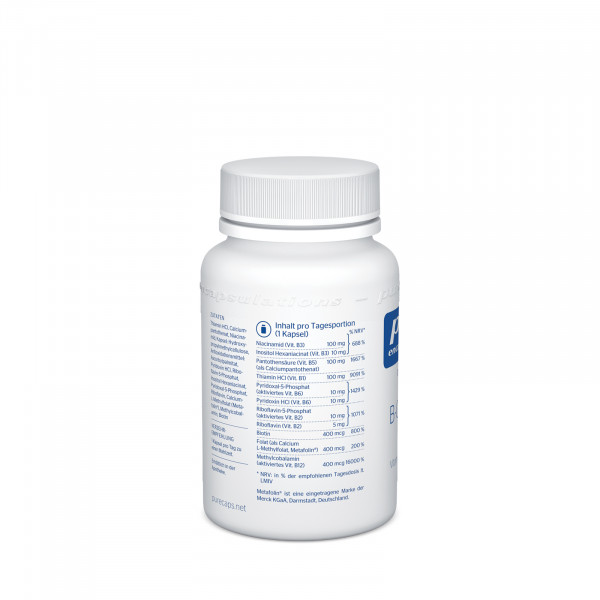 B-Vitamine sind wichtige Regulatoren und Aktivatoren im Stoffwechsel. So trägt z.B. Biotin zu einem normalen Stoffwechsel von Makronährstoffen (Fette, Eiweiß, Kohlenhydrate) bei. Bestimmte B-Vitamine, welche sich im Komplex synergistisch verhalten, sind auch an der Blutbildung und der Versorgung des Nervensystems beteiligt. Zudem haben B-Vitamine Einfluss auf die Erregungsleitung und die Regulation der Hormon-Aktivität*. Die B-Vitamine gehören zu den wasserlöslichen Vitaminen, werden im Organismus schlecht gespeichert und sollten deswegen regelmäßig zugeführt werden. B-Complex Plus von Pure Encapsulations® ist ideal dosiert und beinhaltet B-Vitamine in ihrer aktivierten Form!