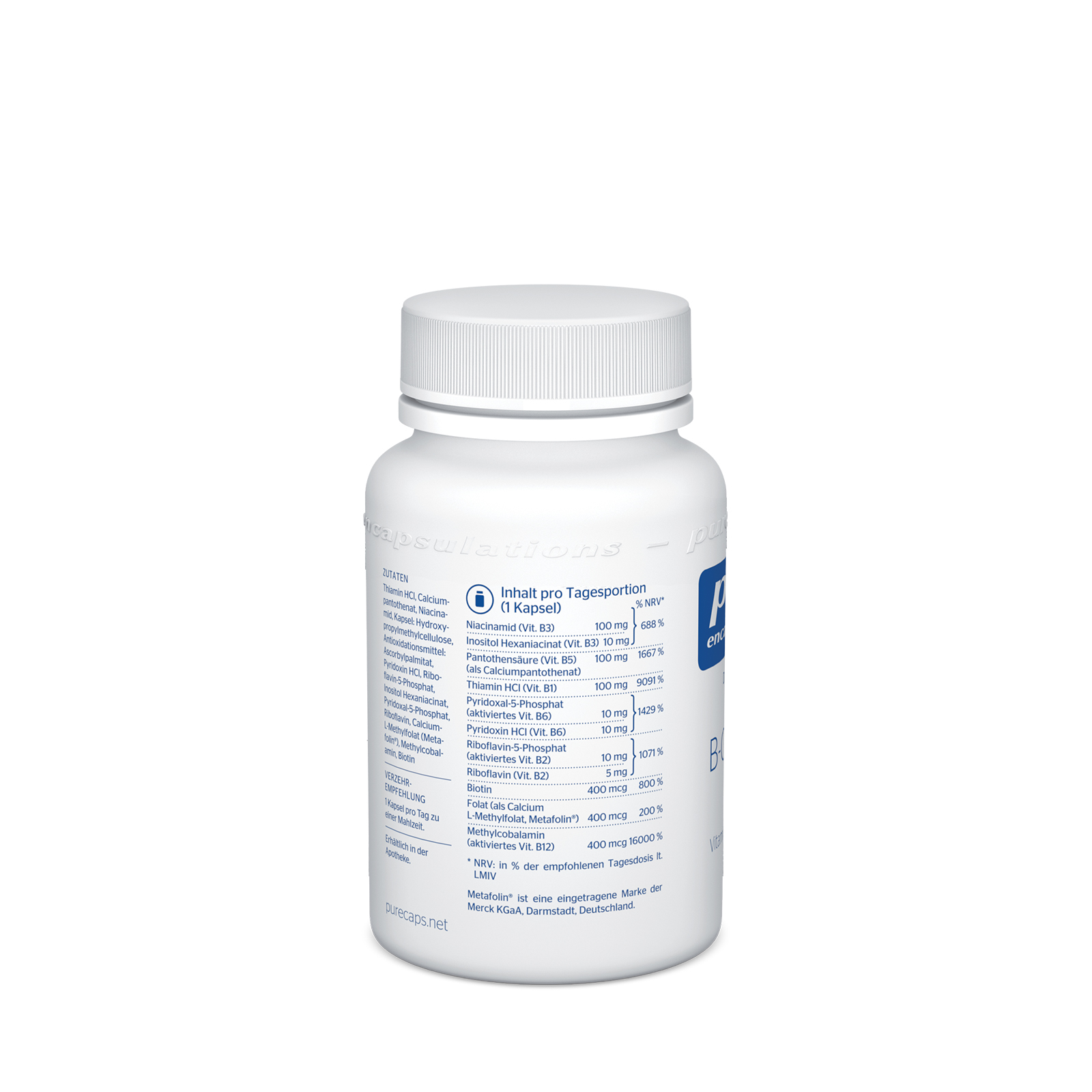 PURE ENCAPSULATIONSNahrungsergänzungsmittel sind kein Ersatz für eine ausgewogene und abwechslungsreiche Ernährung und eine gesunde Lebensweise. Die angegebene empfohlene tägliche Verzehrsmenge darf nicht überschritten werden. Außerhalb der Reichweite von kleinen Kindern aufbewahren.