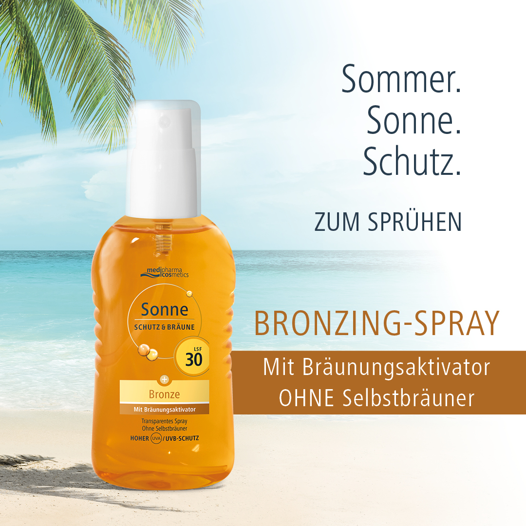 medipharma cosmetics Sonne Schutz & Bräune LSF 30 Pumpspray - Ultraleichtes Sonnenspray für Gesicht und Körper mit Pro-Melanin-Extrakt zur Intensivierung der natürlichen Bräune.