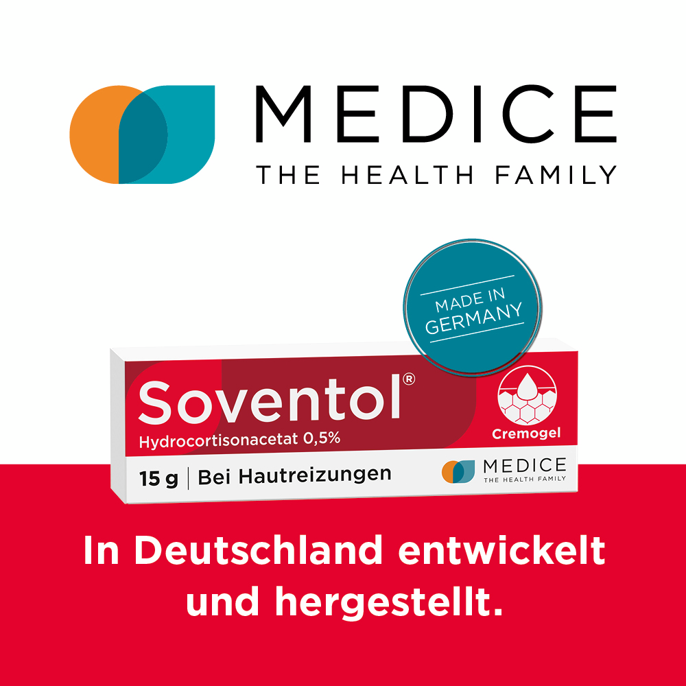 Akute und besonders ausgeprägte Haut-Irritationen wie zum Beispiel gereizte Sommerhaut (Sonnenbrand, Sonnenallergie, Mallorca-Akne), entzündete Insektenstiche und starker Juckreiz erfordern eine effektive Form der Behandlung. Hier hat sich Soventol® HydroCortisonACETAT 0,5% Cremogel bestens bewährt.