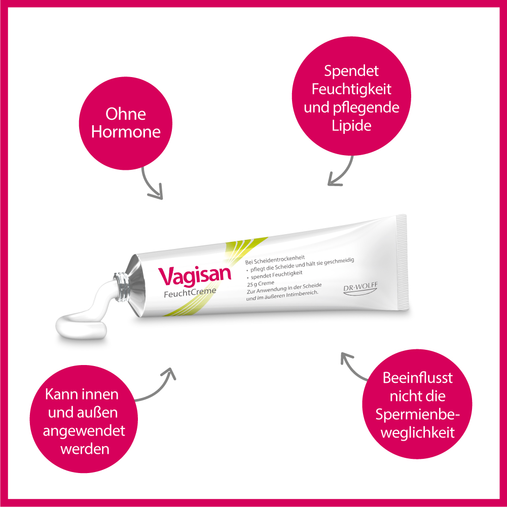 Vagisan FeuchtCreme kann vor dem Intimverkehr angewendet werden (als Gleitcreme), insbesondere bei Schmerzen beim Geschlechtsverkehr. Die Intimcreme beeinflusst nicht die Spermienbeweglichkeit und kann somit auch bei Kinderwunsch angewendet werden.