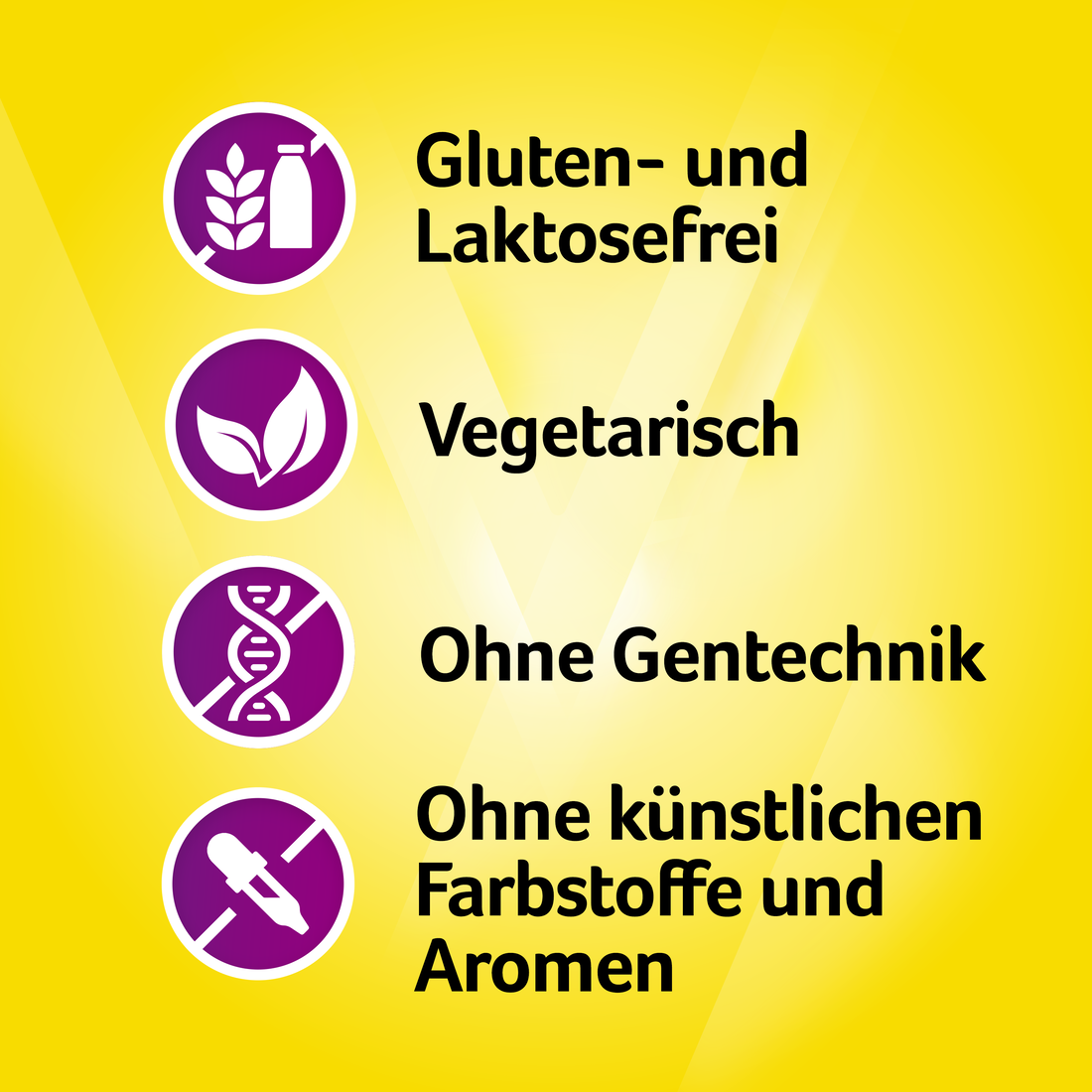 Manchmal ist es jedoch schwer, noch eine Tablette zu nehmen. Daher haben wir die VIGANTOLVIT® Brausetabletten entwickelt – leckere Tabletten mit Beerengeschmack! Die Tablette ist glutenfrei und laktosefrei ist. Sie sind außerdem vegetarisch (nicht vegan - siehe VIGANTOLVIT® Vegan) und enthalten keine künstlichen Farbstoffe, Aromen oder Konservierungsstoffe. 1 Behälter VIGANTOLVIT® Brausetabletten enthält 60 Tabletten, das entspricht einem 2-Monatsvorrat.