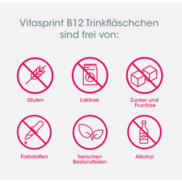 Vitasprint B12 Trinkfläschchen Wirkstoff: Cyanocobalamin (Vitamin B12), (RS)-2-Amino-3-(phosphonooxy)propansäure (DL-Phosphonoserin), Glutamin. Anwendungsgebiete: Traditionell angewendet zur Besserung des Allgemeinbefindens. Warnhinweis: Enthält Sorbitol. Freiverkäuflich. Stand: 12/2020. Zu Risiken und Nebenwirkungen lesen Sie die Packungsbeilage und fragen Sie Ihren Arzt oder Apotheker.