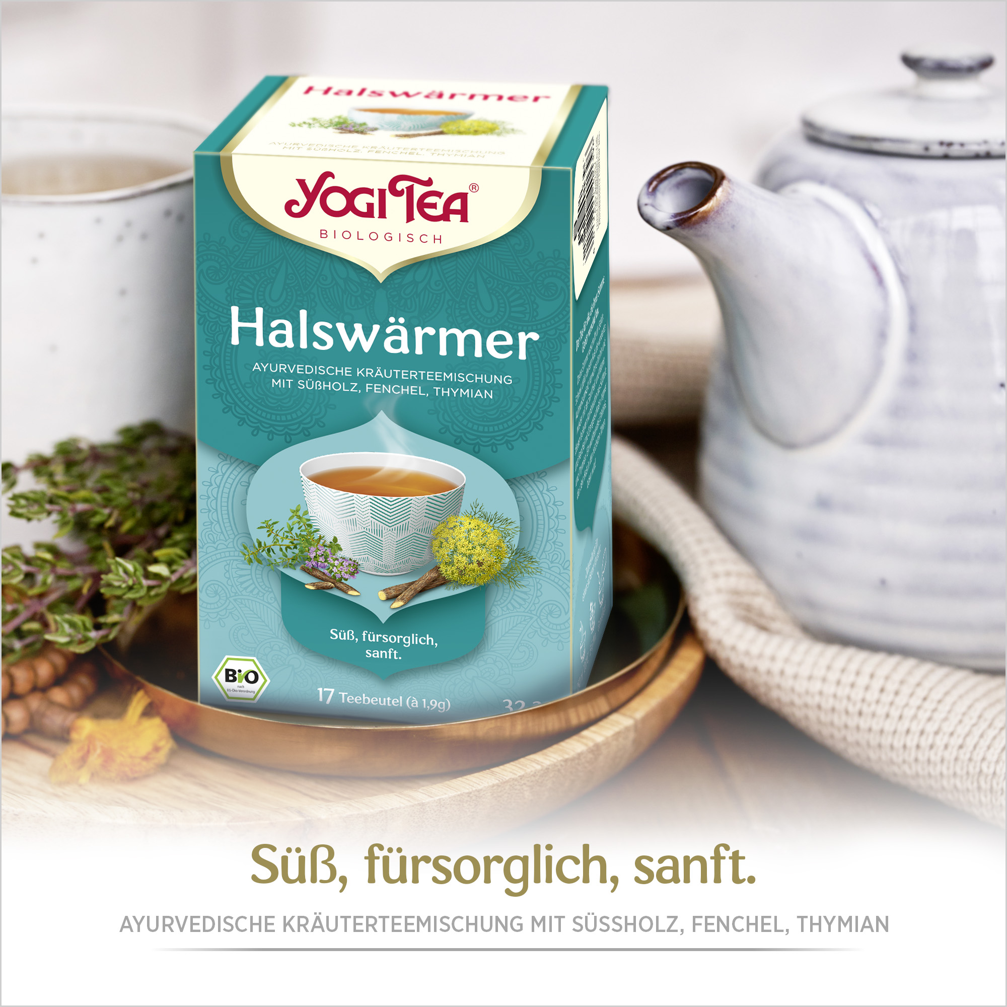 Ayurveda ist eine der ältesten Weisheitslehren der Welt und umfasst den Menschen ganzheitlich in Körper, Geist und Seele. Im Laufe der Jahrhunderte entwickelte sie eine tiefe Kenntnis des Pflanzenreiches und ihrer Bedeutung in der Ernährung für das Wohlbefinden der Menschen. Aus diesem Schatz schöpfen wir noch heute unsere ayurvedischen Kräuterrezepte. Genießen Sie diese liebliche, süße Mischung und schmeicheln Sie Ihrem Hals mit YOGI TEA®'s leicht fruchtigem, sanften Halswärmer Tee.