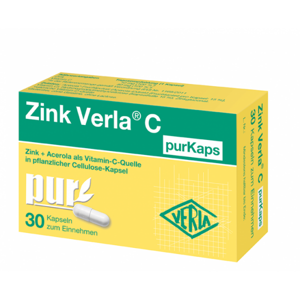 Eine optimale Versorgung mit Zink und Vitamin C ist sehr wichtig, denn sie tragen unter anderem zu einer normalen Funktion des Immunsystems bei. Mit Zink Verla® C purKaps können Sie Ihre tägliche Ernährung und Versorgung mit Zink und Vitamin C sinnvoll unterstützen.