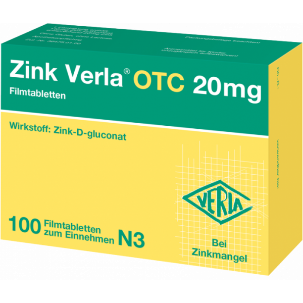 Zink Verla® OTC 20 mg bewährt sich seit vielen Jahren als Arzneimittel mit höchsten Qualitätsstandards in der Therapie von Zinkmangel. Die kleinen Filmtabletten sind leicht zu schlucken. Außerdem wird in den Zink Verla® OTC 20 mg ausschließlich organisches Zinkgluconat für eine gute Aufnahme und Bioverfügbarkeit im Körper verwendet.